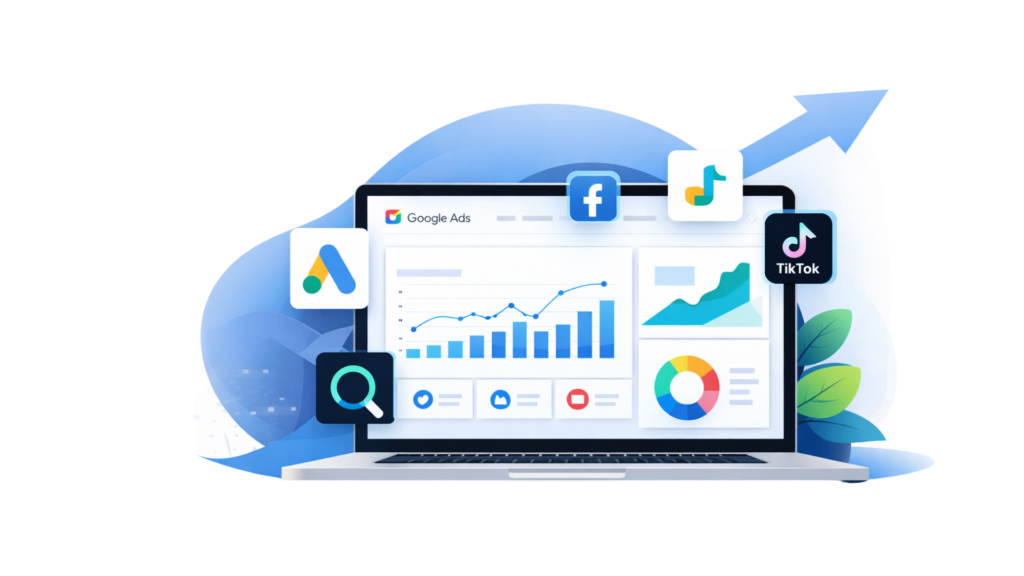 Klik Up membantu bisnis Anda berkembang melalui strategi digital marketing yang terarah dan berbasis data. Dengan pengelolaan Google Ads, Meta Ads, TikTok Ads, serta optimasi SEO website, kami fokus meningkatkan traffic berkualitas, menghasilkan leads potensial, dan mendorong konversi yang nyata. Setiap campaign dirancang secara strategis, dianalisis secara berkala, dan dioptimalkan untuk memastikan hasil yang maksimal dan berkelanjutan.